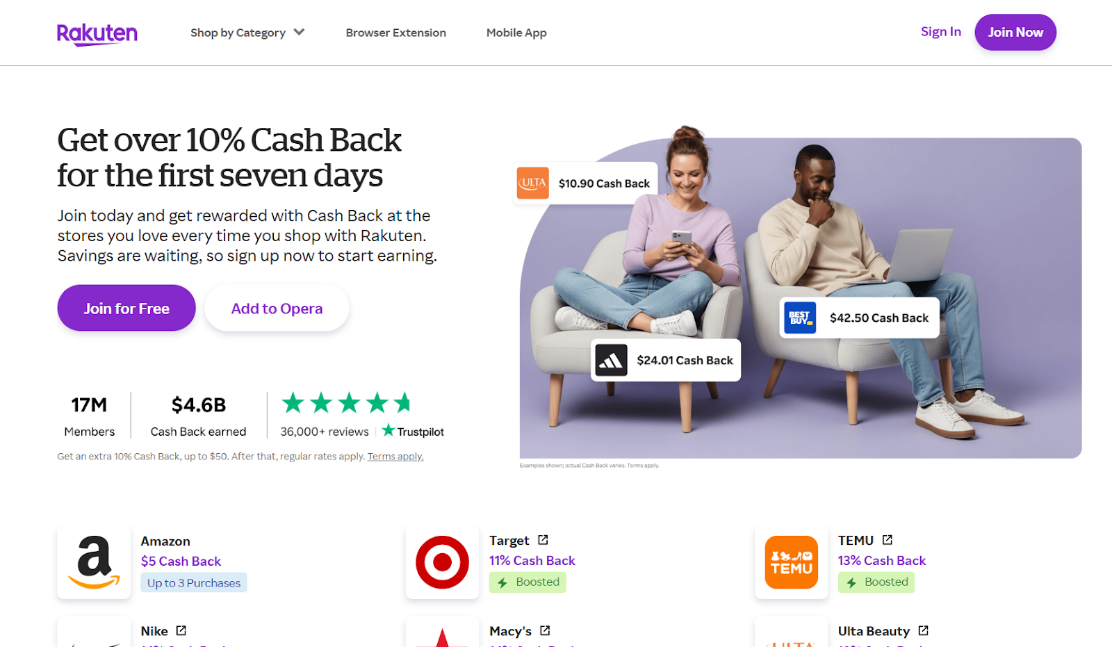 Rakuten offers cashback at over 3,500 stores, including Amazon and Walmart. You shop through its portal or browser extension, and it tracks your earnings automatically.