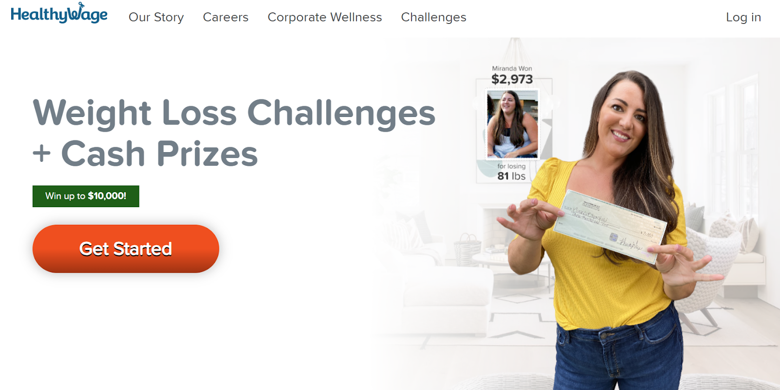 HealthyWage pays you to hit personal weight loss goals. You place a bet on yourself using the Prize Calculator, then collect your prize if you hit your goal.