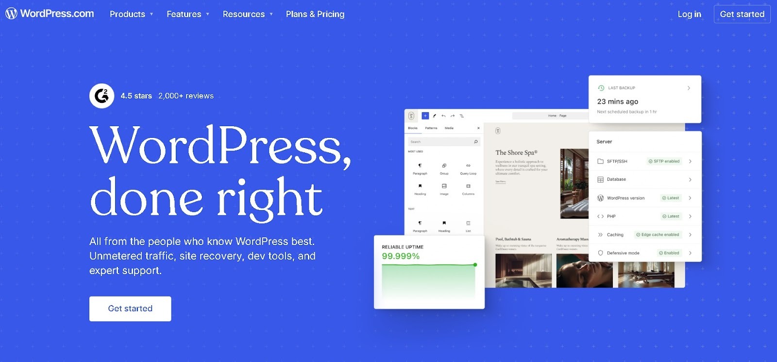 WordPress.com is a simplified, hosted version of WordPress that removes most of the technical setup. You don’t need to buy hosting or manage security updates, as it’s all done for you. This makes it one of the best blogging platforms to make money for beginners.