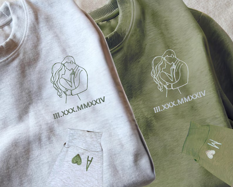 Custom embroidered sweatshirts offer lots of design options. You can even add small line-art figures on the chest or collar for that polished look.