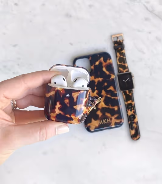 - Build bundles that feel natural: Matching sets, like this Tortoise print phone case + Apple watch band + AirPod case, make people spend more without thinking. Bundling doesn’t create new art, just packaging products smarter to boost order value.