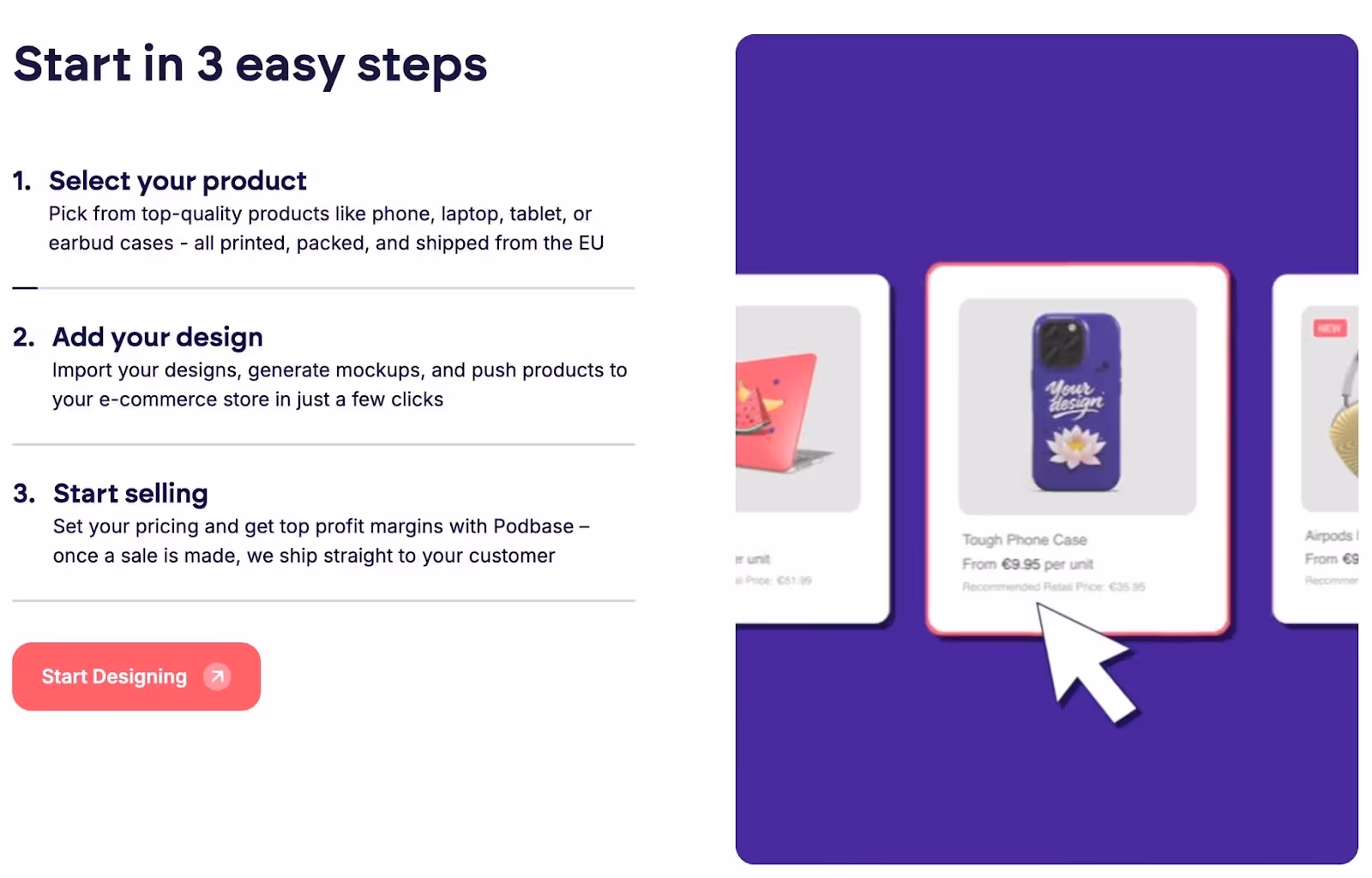 The platform’s printing quality, product previews, and order handling work just as well for greeting cards. It’s dependable, easy to use, and scales nicely once sales pick up, so get started with Podbase.