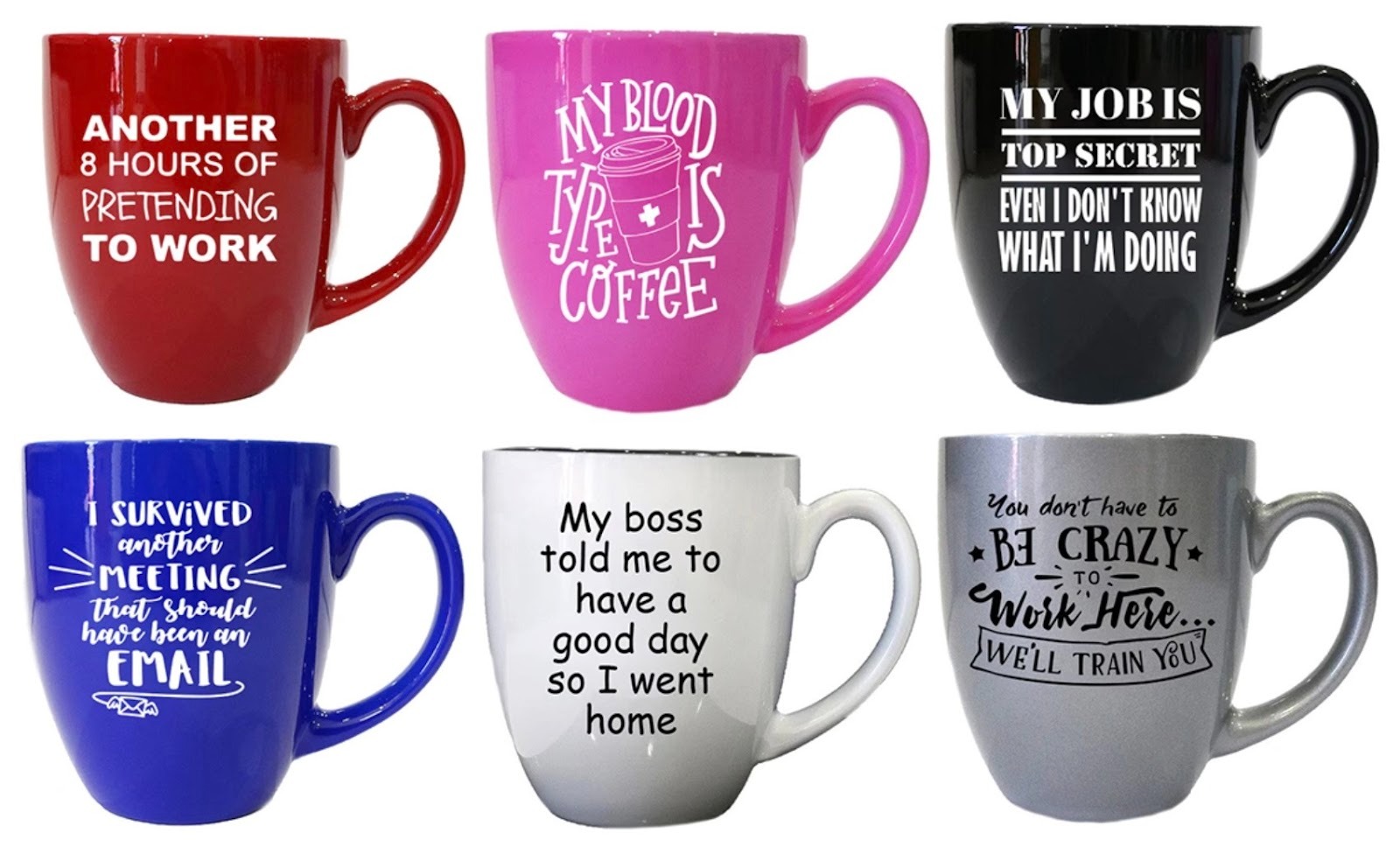 Personalized mugs, coasters, and drinkware work well because they are practical items people use every day.