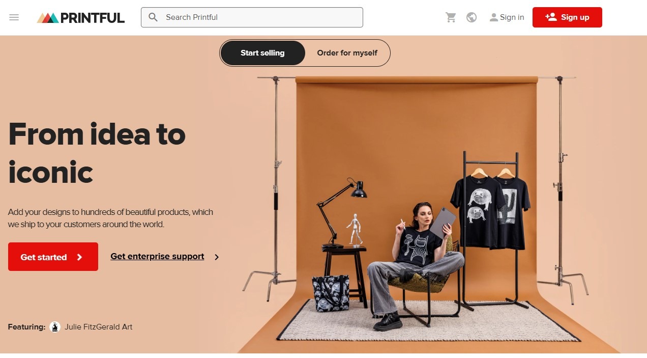 You can start for free, and Printify will connect you to a wide network of global print providers. It offers 1,300+ products across apparel, home decor, accessories, and more.