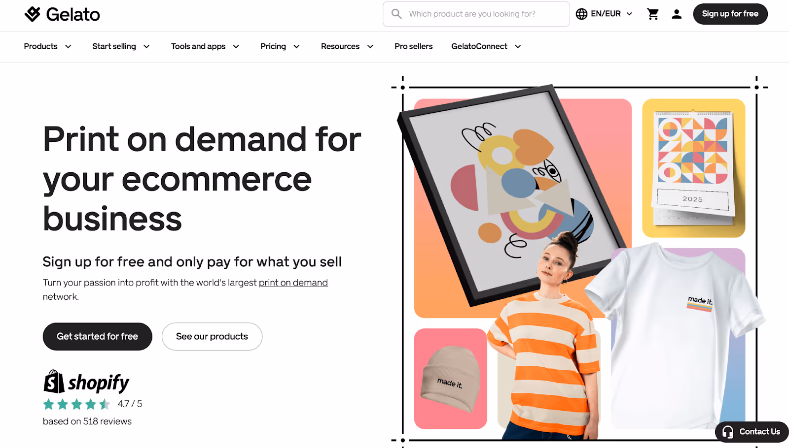 Gelato works with local printers in over 30 countries. It doesn’t have as many products, but they focus on making high-quality and eco-friendly items.