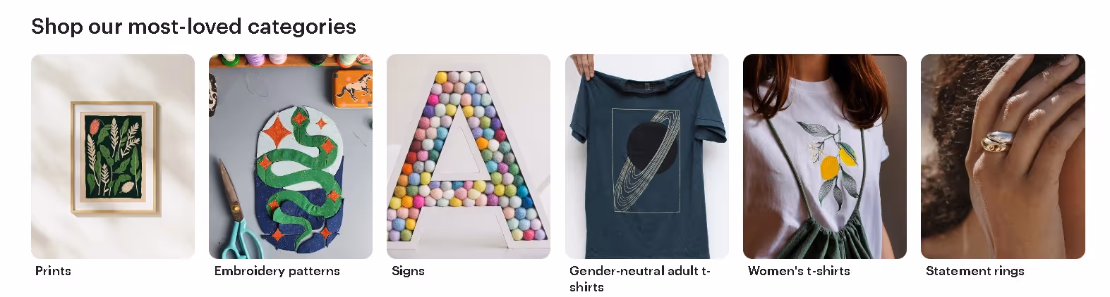 For instance, Etsy has a section for most-loved categories. You can study the products there to inspire your own designs.
