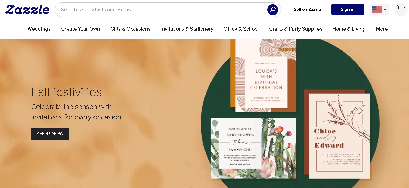 Zazzle is a great platform for selling unique, on-demand gift ideas. It focuses on customizable products like cards, mugs, shirts, and party supplies. You can design items and sell directly to millions of buyers on the Zazzle Marketplace.
