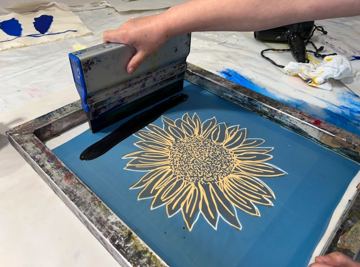 Screen printing dates back to ancient China. It uses a mesh screen and stencils to apply ink. Each color is hand-pulled through a separate screen, creating bright and layered designs.