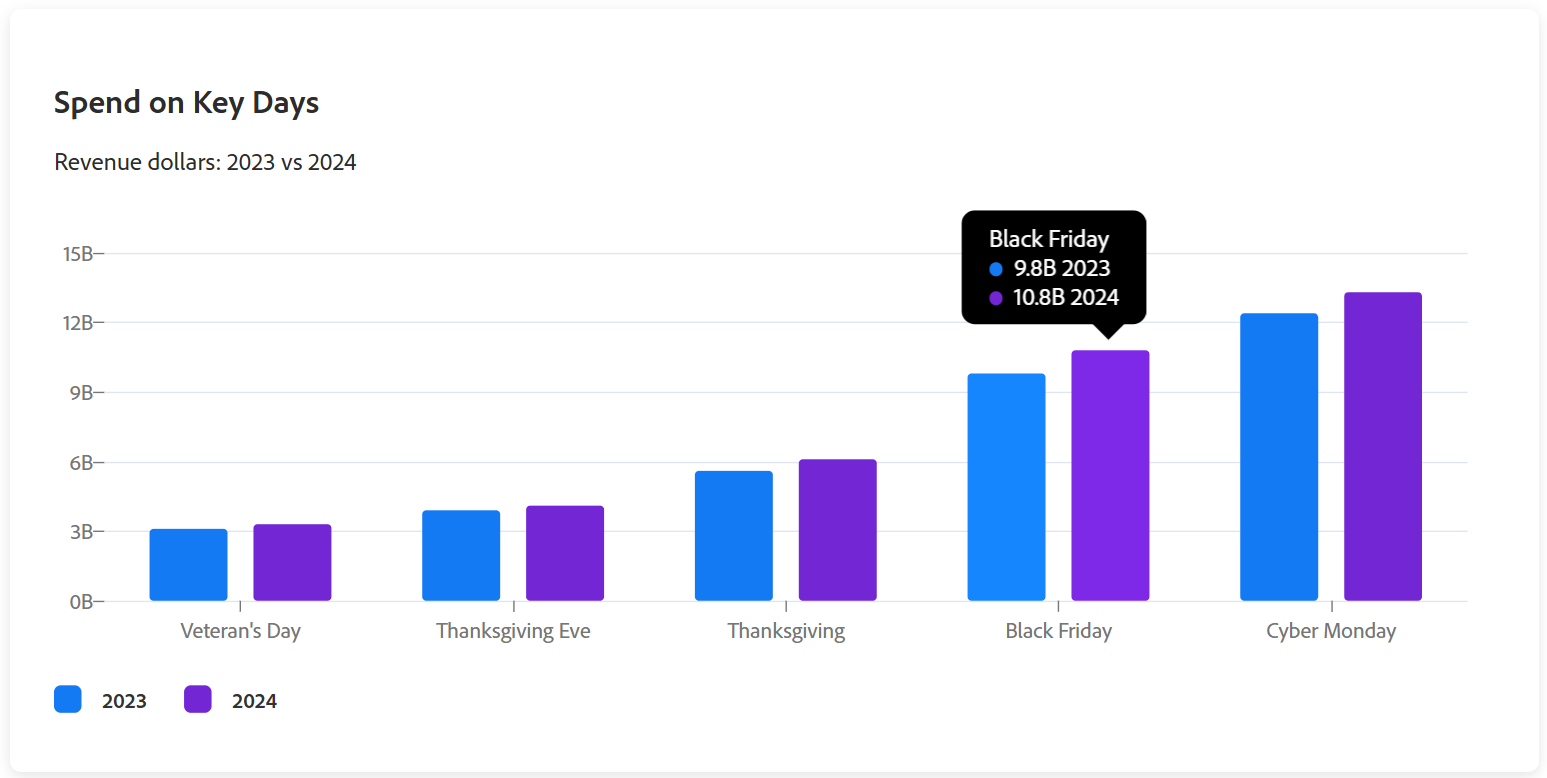 According to Adobe Analytics, U.S. shoppers spent $10.8 billion online on Black Friday 2024.