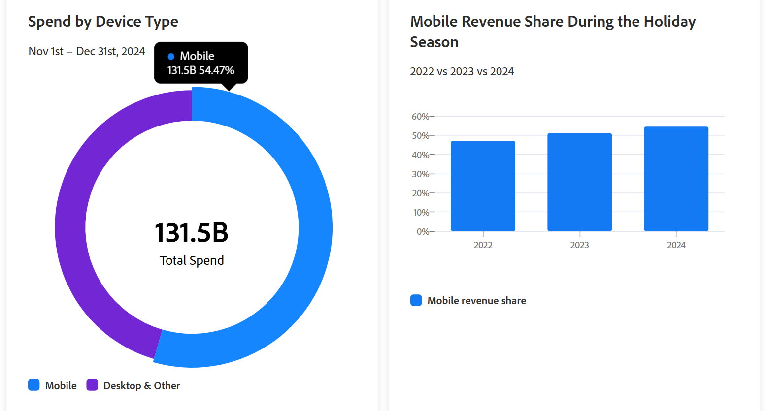 Online shopping will keep leading Black Friday sales. Adobe found that over half (54.5%) of online holiday shopping in 2024 was done on mobile phones.